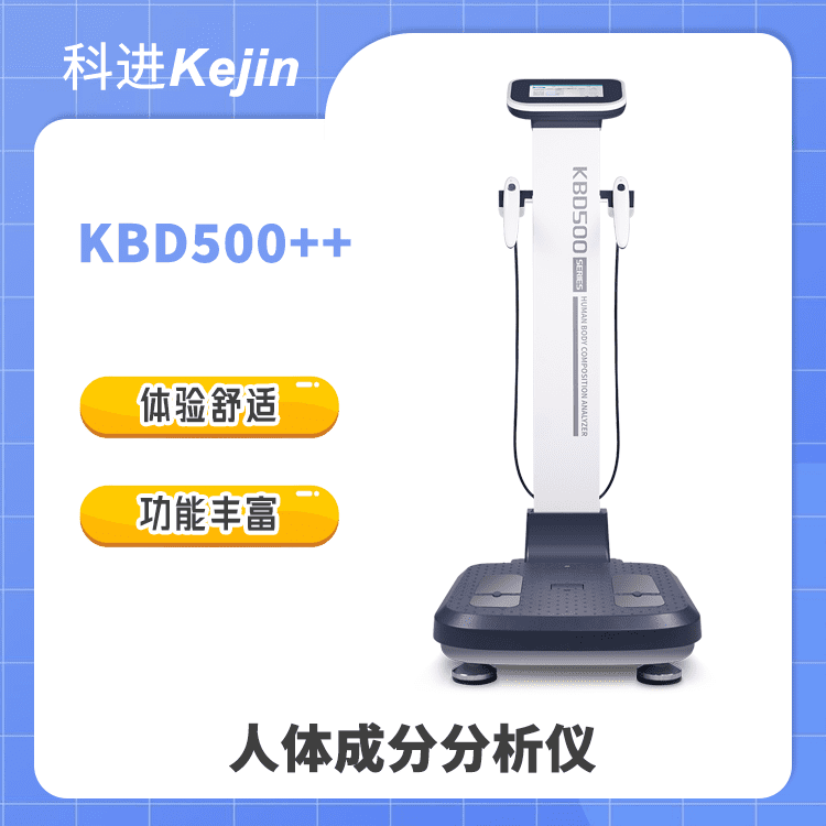 KBD500++是南京科進推出的一款5頻率人體成分分析儀。產品使用BIA法(生物電阻抗分析法),通過測量人體電阻抗評估人體成分。人體成分分析儀KBD500++監測人群涵蓋兒童、成人、老人,并配有運動營養處方,擴展了人體成分分析儀的使用場景。設備采用Android系統,配有觸摸屏,測試者可根據智能語音提示自主完成測量。可在PC端同步進行信息管理。