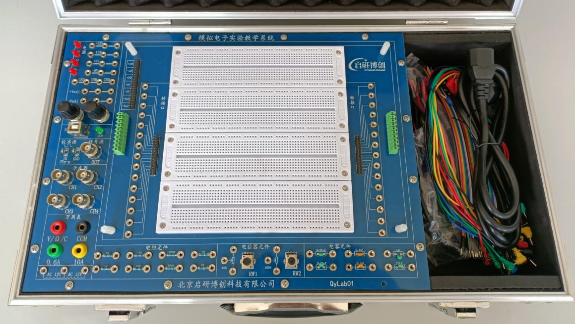 產(chǎn)品詳細(xì)介紹(一)實驗教學(xué)系統(tǒng)主要特點: 1.實驗教學(xué)系統(tǒng)必須采用主實驗箱+模塊化的結(jié)構(gòu)組合方式設(shè)計;配有實驗板安裝接口底座,實驗板更換簡便;實驗電路原理圖布局在PCB板頂層,方便測量和觀察設(shè)計,多模塊集成,支持模擬電子電路系統(tǒng)設(shè)計與性能驗證,學(xué)生不用插各種芯片和進(jìn)行復(fù)雜連線,提升實驗效率; 2.實驗教學(xué)系統(tǒng)必須便攜式結(jié)構(gòu)、移動靈活,箱體尺寸小于55×35×15cm,重量低于5kg;不受實訓(xùn)室場地限制,方便開展隨堂實驗、技能培訓(xùn)、電子競賽等多種活動; 3.實驗教學(xué)系統(tǒng)實驗板的每個實驗?zāi)K單元均由電路原理圖和電路實物兩部分組成,二者對應(yīng),便于電路直觀識圖,理論與實踐結(jié)合; 4.各個模塊均配有電源(帶LED指示)接線端口、地接線端口,輸入、輸出、地接線柱及各功能測點接線柱,方便連線操作和接入測試探頭; 5.提供教學(xué)樣例實驗程序及軟件免費升級服務(wù),并做好培訓(xùn)工作,培訓(xùn)時間不少于2天,免費質(zhì)保期叁年。 (二)實驗教學(xué)系統(tǒng)底板技術(shù)指標(biāo); 1.提供4個示波器通道;配有標(biāo)準(zhǔn)的BNC接口,帶寬100MHz,實時采樣率1GSa/s; 2.提供1個波形發(fā)生器:配有標(biāo)準(zhǔn)的BNC接口,信號輸出頻率范圍:DC 1Hz~25MHz,波形幅度:±3.5Vmax; 3.提供萬用表:配有標(biāo)準(zhǔn)的接口,直流電壓量程800V,電流測量量程10A,二極管測量范圍2V; 4.提供波形校準(zhǔn)源; 5.上述所提供的各儀器均可與PC機連接; 6.提供面包板:面包板尺寸170*138mm; 7.直流電源:電源輸出:+5V、-5V、+12V、-12V; 8.可調(diào)直流電源:0~12V,0~-12V; 9.實驗系統(tǒng)電源帶有保護功能。 (三)實驗內(nèi)容: 1.共發(fā)射極放大電路; 2.共集電極放大電路; 3.共基極放大電路; 4.多級放大及反饋電路; 5.差動放大電路; 6.場效應(yīng)管放大電路; 7.同相比例放大電路; 8.反相比例放大電路; 9.反相比例加法電路; 10.積分電路; 11.微分電路; 12.集成運放兩級放大電路; 13.二階低通有源濾波電路; 14.二階高通有源濾波電路; 15.過零比較器電路; 16.遲滯比較器電路; 17.窗口比較器電路; 18.方波三角波發(fā)生器電路; 19.二極管限幅電路; 20.二極管穩(wěn)壓電路; 21.半波整流濾波電路; 22.全波整流濾波電路; 23.集成功率放大電路; 24.RC正弦振蕩電路; 25.LC振蕩電路; 26.串聯(lián)晶體管穩(wěn)壓電路; 27.三端集成穩(wěn)壓電源實驗。 |
