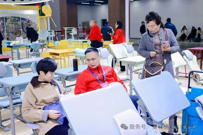 產品區中,多款課桌椅充滿設計感,并以人體工學設計保障學習舒適度與安全性;午休課桌椅則憑借硬核實力脫穎而出 —— 作為江蘇省午休課桌椅地方標準起草單位,其產品嚴格符合國標,江蘇省標雙重標準,更以靈活折疊設計實現 “課用 - 午休” 轉換,節省空間適配校園需求�,F場教育工作者駐足體驗,對產品的專業標準與實用價值高度認可。