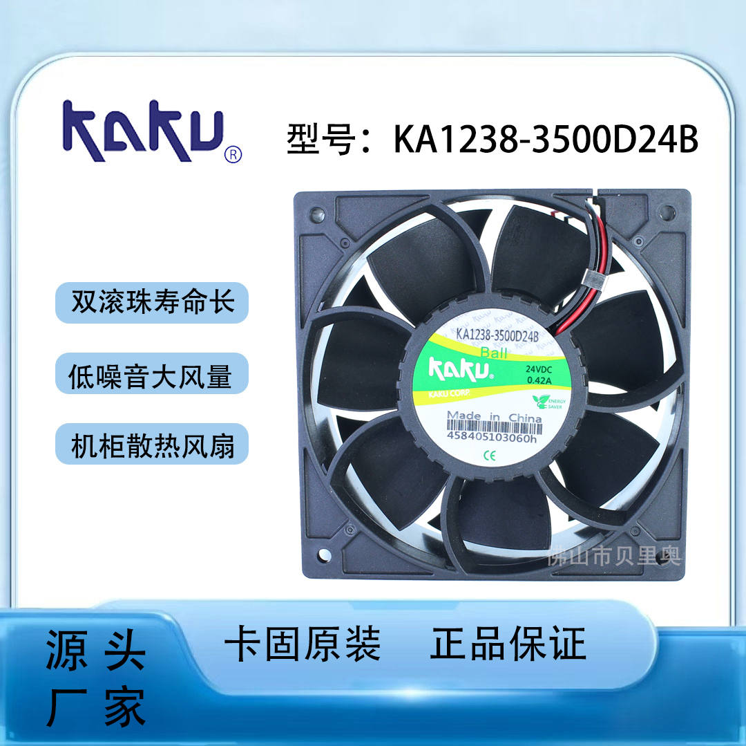 產品詳細介紹KA1238-3500D24BL 基本規格 該型號為直流24V風機,轉速達3500轉/分鐘,電機功率9.6W,工作電流0.3A,風量92CFM,風葉直徑100mm,適用于機柜、設備通風散熱場景。 認證與安全性 產品通過TUV、UL、CE、ROHS、EMC等多項國際認證,確保在電氣安全、電磁兼容性及環保標準上符合全球市場要求。 產品應用領域與典型客戶案例 核心應用行業 石油、化工、通訊、軌道交通、電梯、機床、紡織、環保設備等。 用戶案例 ABB、海爾集團、西門子、寶鋼、大唐電子、東方電子、奧迪斯電梯等企業均已批量采用KAKU風機產品。 |