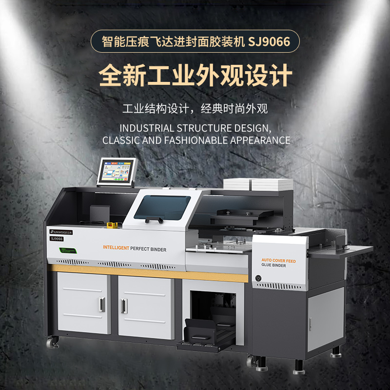產品詳細介紹全自動膠裝壓痕一體機,全新飛達自動進紙技術,全自動收書整理功能,自動測厚功能,雙風葉吸塵電機,全新收膠尾技術,三膠輪+側膠技術,10.2寸觸摸屏,智能控制系統
