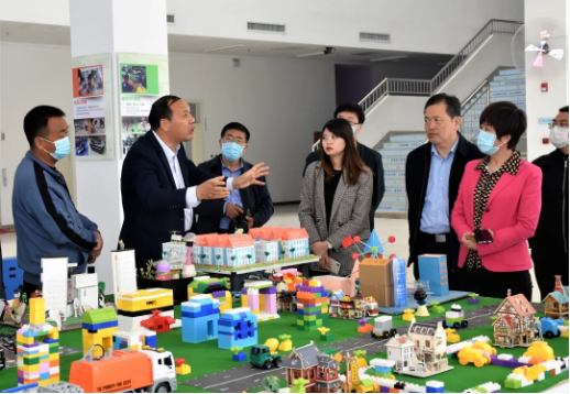 智慧教育專家王立新詳細為參觀團介紹智慧消防、智慧社區、智慧生活、未來城市模型,展示了學生在編程設計、算法和開源硬件方面的未來規劃和職業愿景。