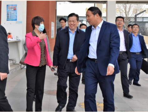 蘭州新區教育系統曾俊萍局長一行人與楊世臣校長親切交談。