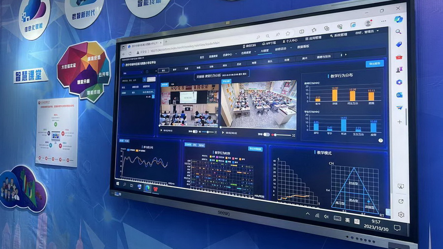 由現代中慶提供技術支持的西寧市南川西路小學智慧教研展區,以“‘智課’驅動精準教學 數據賦能智慧教研”為主題展示了學校基于AI課堂教學數據開展精準教學反思,以及通過備、磨、聽、評、賽模塊開展備教學評一體化的AI精準教研的應用場景。