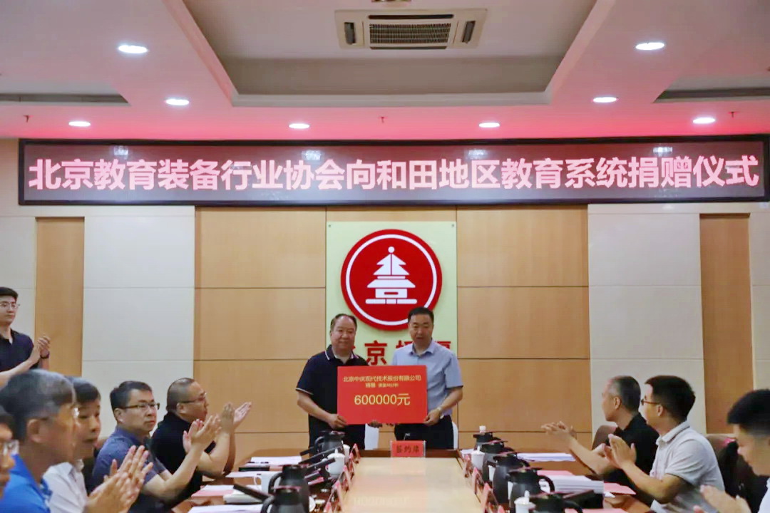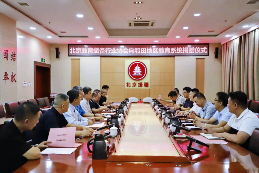 為進一步落實北京市教育援疆工作,推動邊疆地區教育公平與質量提升,北京教育裝備行業協會積極牽頭,發動北京市多家教育技術優秀企業,面向新疆和田地區學校進行捐贈。8月9日,北京教育裝備行業協會柴旭津會長率北京市教育代表團赴新疆和田,正式將協會和各會員單位的捐贈送達和田教育局。