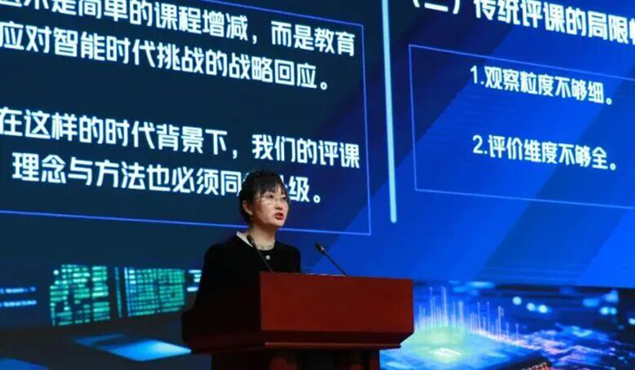 在隨后的專家評課環節,芝罘區教育裝備與技術研究中心徐松鑫專家結合AI教學數據分析報告,進行了數據支撐的精準點評與指導。報告中的客觀數據,如師生互動頻率分布、教學活動時間分配、學生課堂參與度指標等,為專家評課提供了直觀、量化的參考依據,使教學評價從經驗判斷走向證據支持,從定性描述轉向定性定量相結合,顯著提升了教研活動的科學性與針對性。
