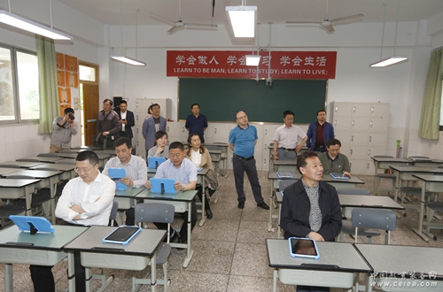 劉東巡視員一行觀摩了長虹·智慧校園方案在綿陽外國語學校云交互平臺的運用,并體驗了智慧教學、智慧環境、智慧管理、智慧服務、中高考改革走班制教務管理平臺、AR/VR教學等多項新技術、新產品。