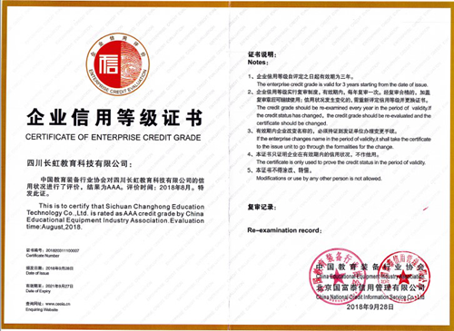 榮獲全國教育裝備行業“AAA級信用企業”稱號是國家權威部門對長虹教育在產品質量、企業服務和企業信譽方面所做努力的充分肯定,也進一步堅定了長虹教育做好質量、服務、信譽等方面工作的信心。長虹教育將會以更高的標準要求自己,為教育信息化建設提供更多更高效的產品方案,為行業發展做出榜樣貢獻自身的力量。