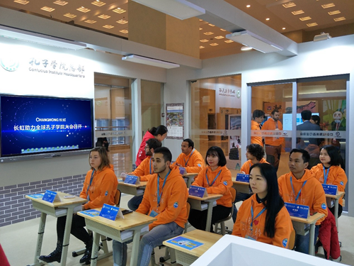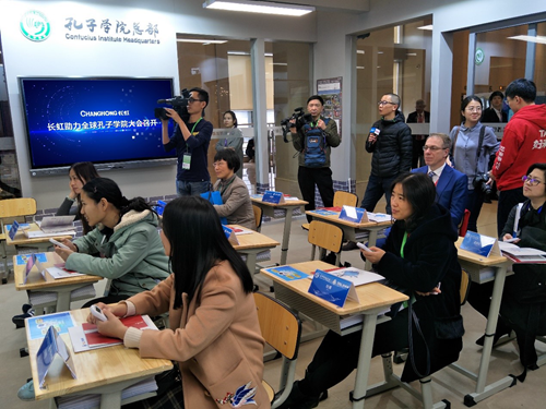 2月4日,第十三屆全球孔子學院大會在成都開幕,來自150多個國家和地區的大學校長、孔子學院代表近1500人參加大會,共話漢語海外教學和文化交流。長虹助力全球孔子學院大會,為第十三屆全球孔子學院大會送了一份別樣的禮物—孔子學院全球首間智慧教室,受到了現場中外大學校長、孔子學院代表的一致好評。