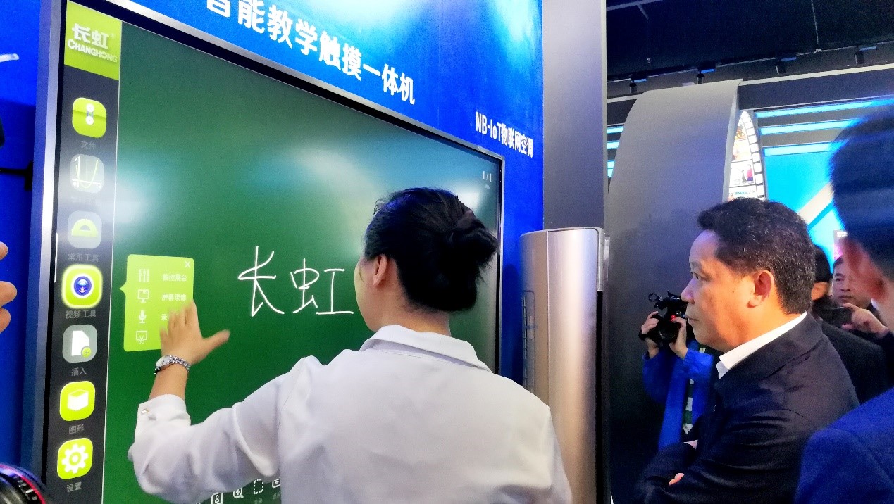 長虹教育以“高校要將現(xiàn)代信息技術(shù)深度融入教育教學(xué),打造智慧學(xué)習(xí)環(huán)境,探索實施智能化的精準(zhǔn)教育,提升教學(xué)效果,培養(yǎng)學(xué)生智能時代核心競爭力”為藍(lán)本,為高校打造一套側(cè)重課內(nèi),覆蓋課前、課中、課后的智慧教學(xué)系統(tǒng)和工具的智慧課堂。同時,長虹還向楊副省長演示和介紹了長虹激光影院、長虹會議平板、長虹NB-IOT物聯(lián)網(wǎng)空調(diào)的使用及在超高清方面的創(chuàng)新應(yīng)用。