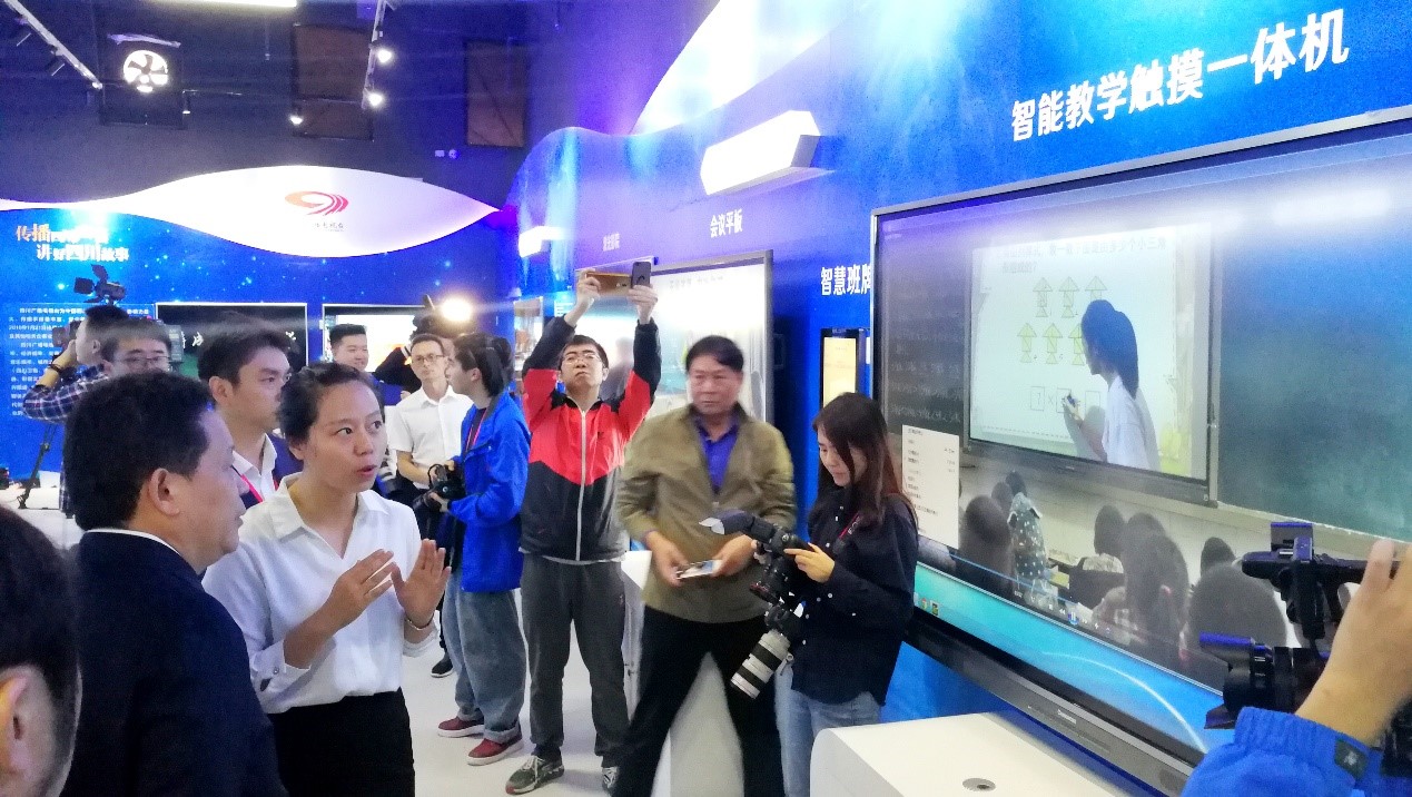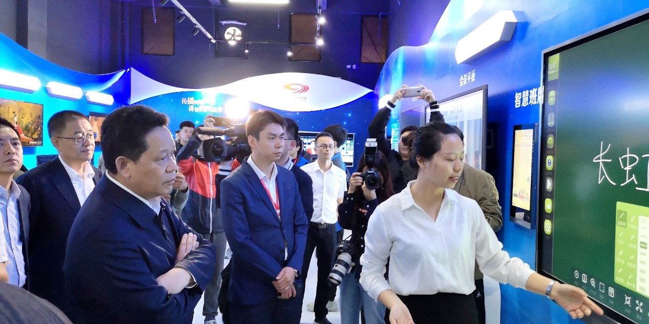 楊興平副省長一行先后聽取和體驗了長虹教育智能教學(xué)觸摸一體機(jī)、長虹教育智慧班牌、長虹教育高校智慧教室解決方案等教育教學(xué)新產(chǎn)品和新技術(shù)新產(chǎn)品在教學(xué)中的實際應(yīng)用。