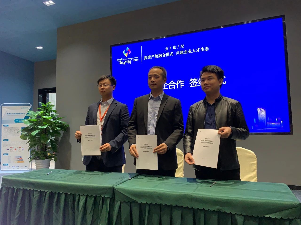 會上,西華大學與四川工商學院計算機學院分別與長虹教育、國科科技簽訂了三方戰略合作協議,今后將深化產教融合模式,共同培養符合成都高新區中小企業產業升級轉型發展的高素質技能型人才。