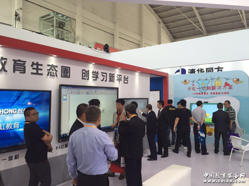 開展期間,展會現(xiàn)場人山人海,十分壯觀。特別是在特裝E2館A015展位的長虹展臺,“長虹”醒目的Logo和精心布置的模擬教室,吸引了眾多參觀者競相的駐足體驗。整個長虹展臺現(xiàn)場人頭攢動,往來參觀者絡繹不絕。