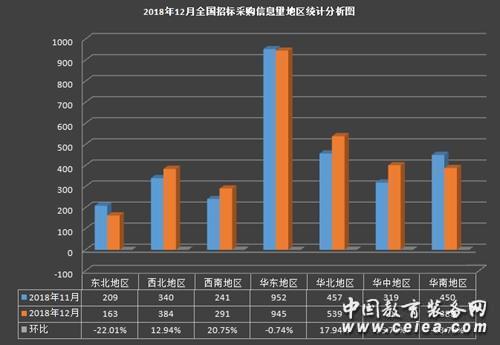 2018年12月教育裝備市場招標采購信息量環比小幅增長