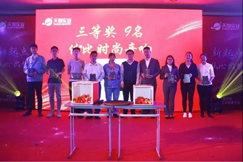 在表演、游戲和晚宴環節中,天智家人們各展所長,為大家帶來一個又一個精彩紛呈的節目�,F場掌聲雷動,笑聲迭起,氣氛十分熱烈!抽獎環節豐厚的禮品,現金紅包都不斷激發著現場的氛圍;本次晚會的壓軸大戲“錦鯉大獎”由28項實物獎品和現場李董及各高層領導追加的現金組成;總價值近5萬元“錦鯉大獎”的開出,更是將大會推向了最高潮!