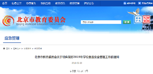 據北京市教委網站消息,北京市教委發布《關于切實做好2019年學校食品安全管理工作的通知》(以下稱《通知》),《通知》對幼兒園、中小學、高校等校園食品安全管理作出明確要求。《通知》要求,中小學、幼兒園應當建立集中用餐陪餐制度,安排學校相關負責人每頓飯與學生一同用餐,做好陪餐記錄,及時發現和解決供餐過程中存在的問題。
