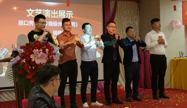 市場部與電商部的師哥美女們帶來的賞心悅目的《3D打印T臺秀》,隨著明快的音樂節奏,師哥美女們時而傲酷神秘,時而搞笑逗逼……這場特別的創意秀讓人眼前一亮; 銷售部《今晚極光脫口秀》詼諧幽默,一句一段子,全場掌聲不斷;外貿部與售后部組團帶來的《海草舞》表演個性十足,展現了公司員工蓬勃的朝氣與活力美;產品端《歌曲串燒》聲聲入耳,喚起現場掌聲陣陣。最值得一提的是,劉總攜總經辦同事帶來的精彩絕倫的Cosplay表演嗨翻全場,小伙們紛紛舉機拍照。