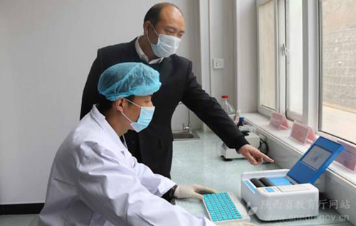 韓城市象山中學食品安全負責人對食堂食材檢測情況進行檢查