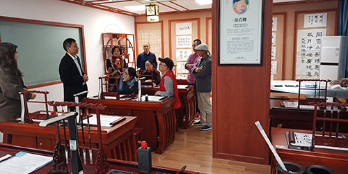 在董事長陳登貴先生的陪同下,東莞市書法家協會一行領導參觀了智慧書法教室展廳,詳細了解了公司智慧書法教室的軟、硬件研發情況,并對廣視通智慧書法教室所取得的成績給予了高度評價,同時也提出了一些建設性、針對性和可操作性建議。