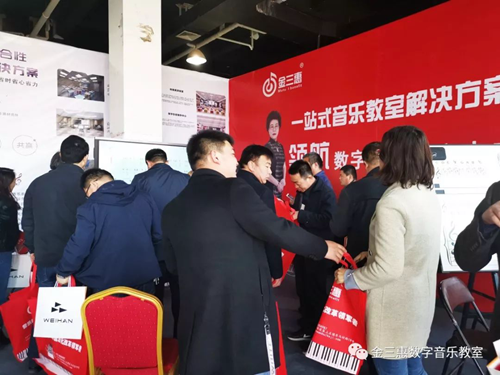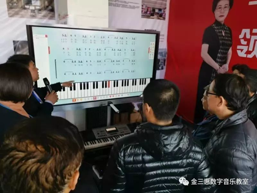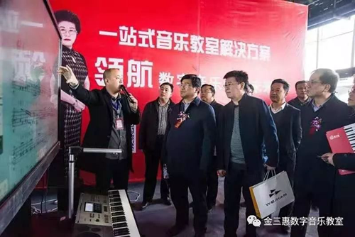 展會上金三惠產品受到各位領導及校長的關注,市教育局局長楊華云在金三惠展廳表示“希望金三惠的產品裝到每個農村學校,讓我們沒有音樂老師的學校能上專業的音樂課“,這是對金三惠最大的贊揚和肯定;展會上大家聽說有音樂教學的展示,大家口口相傳紛紛前來觀摩學習,金三惠得到各位校長和音樂老師的認同和喜歡,展位現場十分火爆!