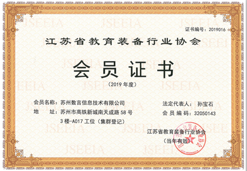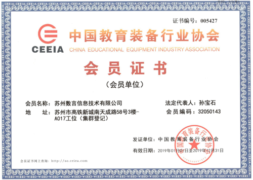 今年,蘇州數(shù)言有幸成為中國(guó)教育裝備行業(yè)協(xié)會(huì)的一員,共同為教育事業(yè)貢獻(xiàn)出自己的力量,助力中國(guó)教育的科學(xué)化,國(guó)際化。