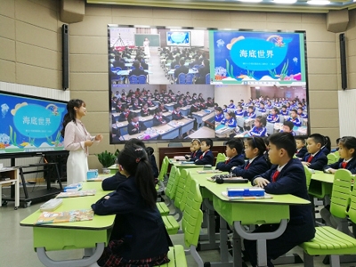 “請橫祥校區的小朋友來說一說,課文是從哪幾個方面來寫海底世界的?”呂路安老師在橫店小學教育集團南上湖校區的報告廳里,對著遠在幾公里之外的孩子進行提問。3月15日,省義務教育學�!俺青l攜手、同步課堂”東陽試點現場展示活動在橫店小學教育集團南上湖校區舉行。