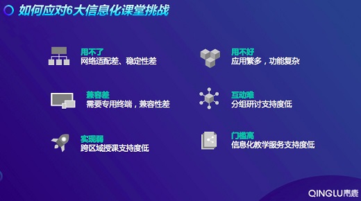 針對以上現(xiàn)狀,青鹿總結(jié)了當(dāng)前課堂實(shí)踐的6大痛點(diǎn)“用不了、用不好、兼容差、互動難、實(shí)現(xiàn)弱、門檻高”。