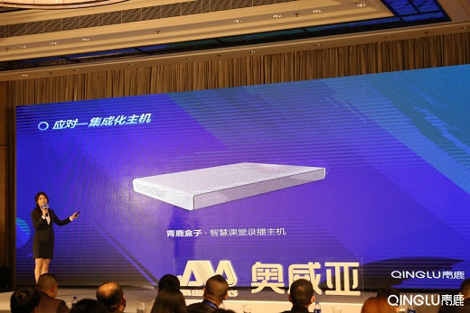 青鹿講師為來賓展示青鹿盒子(智慧課堂錄播主機(jī))