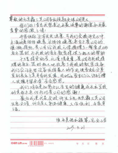 最后,由衷感謝維西保和鎮(zhèn)第二完全小學(xué)全體師生,感謝你們的來信,祝學(xué)校越辦越好,祝全體師生幸福安康!