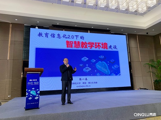 在南京站現(xiàn)場,南京師范大學張一春教授以《教育信息化2.0下的智慧教學環(huán)境建設》為主題發(fā)表演講,針對教育信息化的需求,提出了智慧教學環(huán)境建設思路及對策,并與現(xiàn)場來賓進行交流探討。