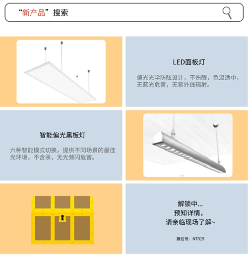 全新產品教育照明燈——首次問世,通過現場的實地展示和互動體驗,讓觀眾了解到教室照明的新趨勢及國家政策對學生學習用眼的指向標準。