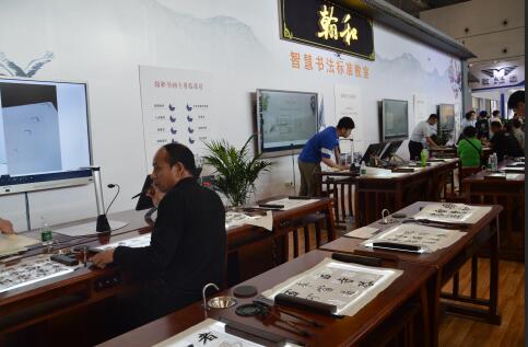 本屆展會,啟華教育帶來翰和智慧書法標準教室,顛覆了傳統書法教育模式,能把書法教學效率提高五倍以上。