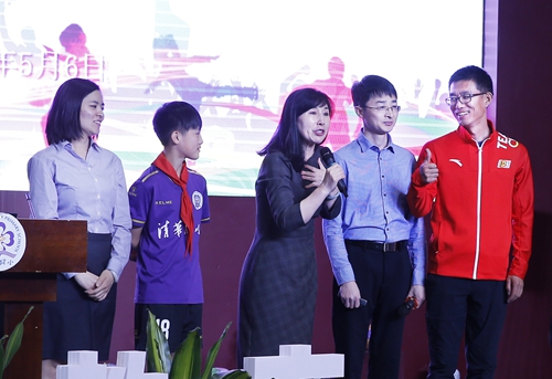 清華附小校長竇桂梅以《無體育不清華 無體育不志成》為主題進行了主旨報告,體育教師、班主任、學生和家長代表從不同的角度進行了交流發言,生動呈現了清華附小的體育育人理念、課程體系、活動體系、資源體系、保障體系、評價體系等學校體育改革的全貌。會后,全體與會人員來到清華附小的馬約翰田徑場,共同觀摩了清華附小“1+x”特色體育課程和豐富多彩的體育社團展示活動。