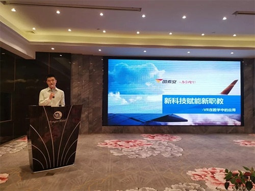 作為本次大會支持協辦單位,深圳國泰安教育技術有限公司代表雷應濤先生應邀出席,在會上發表了“新科技賦能新職教,VR在教學中的應用”的主題演講,向參會嘉賓介紹了國泰安VR智慧課堂和VR智慧實訓,及如何走進職業院校、推動校企深度融合發展等應用成果,贏得了與會來賓的一致好評。