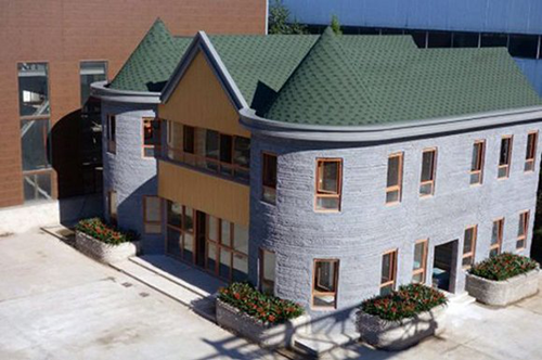 在位于北京市的一個(gè)不起眼的工業(yè)園區(qū)中,佇立著一座高度6米,長(zhǎng)寬均為15米,墻體厚度25厘米,面積400平方米的雙層別墅。這是全球首座3D現(xiàn)場(chǎng)/整體打印的建筑物。