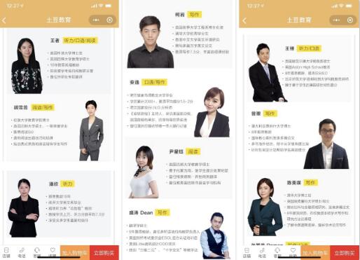 用我自己的例子來說吧。因為得知一個學長雅思口語考了8.5分,極為膜拜,跑去取經。學長極力推薦土豆的口語老師李超。因為這個源頭,我開始研究土豆的師資,但畢竟如果整個機構靠一個老師牛,也撐不起整個雅思考試。于是我又去聽了一次雅思天后Vicky老師(也是土豆的創始人,雅思圈內非常有名)的試聽課,覺得是真的厲害,不是靠包裝吹出來的那種厲害。聽完課之后我基本就對土豆比較放心了。