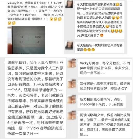 當然,教研實力的強弱最后還是要看結果,也就是學生的成績提升效果。首先說我自己,從入學時的6.0提高到最后一次取得7.5分的成績,真的可以說全部都是歸功于各位大神老師們的指導,我同班的同學還有到8分的大神。當然這也跟自己的學習力有一定關系,但大家大多都有不同程度的明顯提分效果。興奮的是,我們那一班在發了成績時,班級群里簡直是爆炸,大家自己感受下。