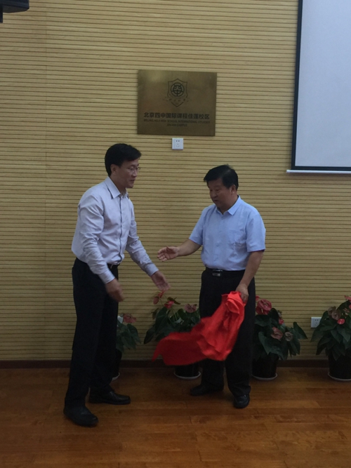 圖為2017年9月份北京四中馬景林校長(zhǎng)和佳蓮學(xué)校劉子玉校長(zhǎng)共同為北京四中國(guó)際課程佳蓮校區(qū)揭牌