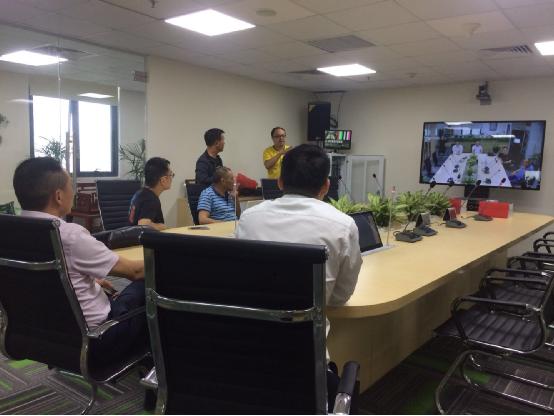河內大使館人員來訪,現場與廣州總部進行互聯互通演示↑