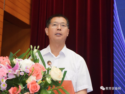 ▲教育部關(guān)心下一代工作委員會(huì)常務(wù)副主任、中國(guó)教育裝備行業(yè)協(xié)會(huì)會(huì)長(zhǎng)王富講話