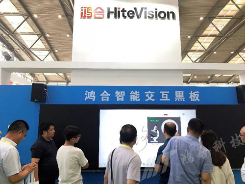 在琳瑯滿目的展品中,鴻合科技的高科技智慧黑板吸引了眾多參觀者的目光。據(jù)悉,新一代鴻合智能交互黑板采用全貼合工藝及納米電容觸控技術(shù),在保留粉筆書寫、多人觸控、多媒體教學(xué)等功能的同時(shí),還擁有諸多技術(shù)創(chuàng)新,比如將色域從72%提升至85%,還原屏幕真實(shí)色彩,為學(xué)生帶來真實(shí)“視界”。此外,還新增去藍(lán)光護(hù)眼功能,為師生打造健康綠色的學(xué)習(xí)環(huán)境。