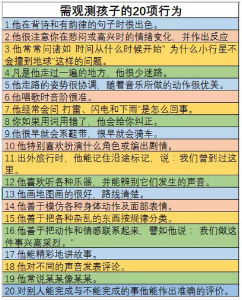 如果孩子在1、8、17條表現(xiàn)突出,代表他可能有很好的語言天賦。如果孩子在6、12、18條表現(xiàn)突出,代表他可能有很好的音樂才能。如果孩子在3、7、15條表現(xiàn)突出,代表他可能在數(shù)學(xué)、邏輯方面有天賦。