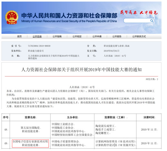 2019年全國技能大賽-全國電子信息行業新技術應用職業技能競賽為國家級二類競賽,由中國電子質量管理協會、中國就業培訓技術指導中心共同主辦。該比賽是目前人社系統最高級別的3D打印與VR賽項。