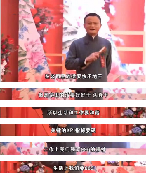馬云宣稱 :“婚姻的第一個KPI,第一個指標就必須要有結(jié)果,要有產(chǎn)品,產(chǎn)品是什么?要生孩子。”,“婚姻的道路有很多,但是有一條,每個人都必須走,都就是去生孩子,陽光燦爛的時候要修理屋頂,年輕力壯的時候多生孩子。”