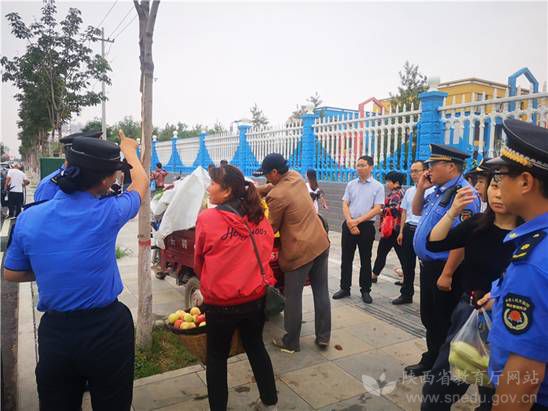 韓城市聯合執法小組對校園周邊流動攤販進行整治