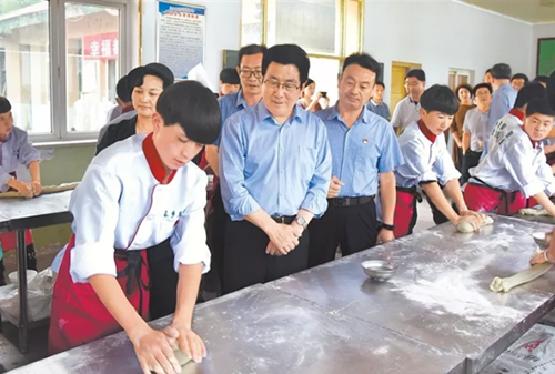 東鄉縣職業技術學校里,學生們正在接受特色美食培訓。林鐸來到學生中間,了解他們的學習生活情況,勉勵大家學好手藝,掌握一技之長。他說,東鄉縣發展餐飲業有傳統、有基礎,市場潛力大,要尊重農民群眾意愿,因人施教、因材施教,做好技能培訓與市場和勞務公司的對接,拓寬貧困群眾增收渠道。