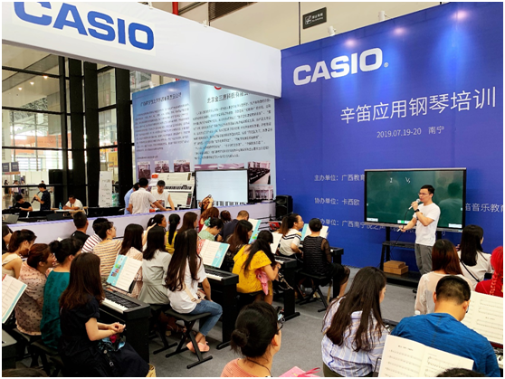 2019年7月20日,第8屆廣西教育裝備展示會第二天上午,由廣西教育行業協會主辦,卡西歐(中國)貿易有限公司、廣東辛笛音樂教育咨詢有限公司協辦,廣西南寧樂之聲樂器有限責任公司承辦的幼兒園教師音樂應用鋼琴演奏法培訓在南寧國際博覽中心D區5號館A01展位舉辦,本次培訓由廣州星海音樂學院音樂教育學院的青年講師葉金坤老師主講,培訓對象是來自全區三十多所已經裝備了卡西歐電子鋼琴的幼兒園音樂教師。