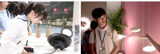立達信銷往全球112個國家及地區的產品均在展廳展出,“琳瑯滿目”的照明產品及物聯網解決方案也引起同學們極大的興趣。