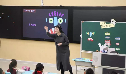 課堂結合小學生的年齡特點,在UCN納米智能黑板中展示可愛、有趣的卡通圖片,鼓勵同學們踴躍舉手,參與“動畫拼圖”,任務型教學貫穿于整個課堂中,游戲化的風格讓學生輕松愛上課堂!