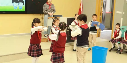 老師們鼓勵學生積極參與課堂,精美的PPT讓學生全身心的投入和體驗,通過帶上假面場景模擬、唱英語歌曲等方式,感知、體驗、實踐、參與、合作一個步驟都不能少!